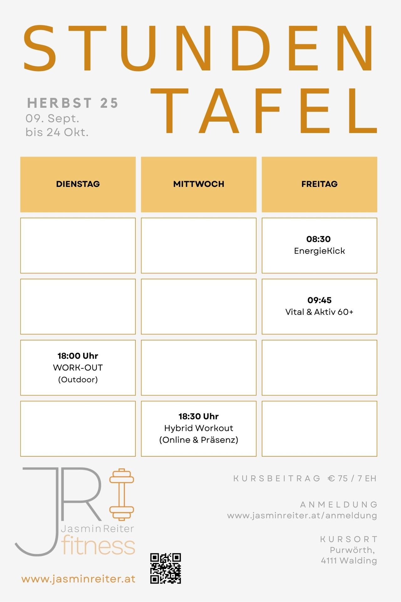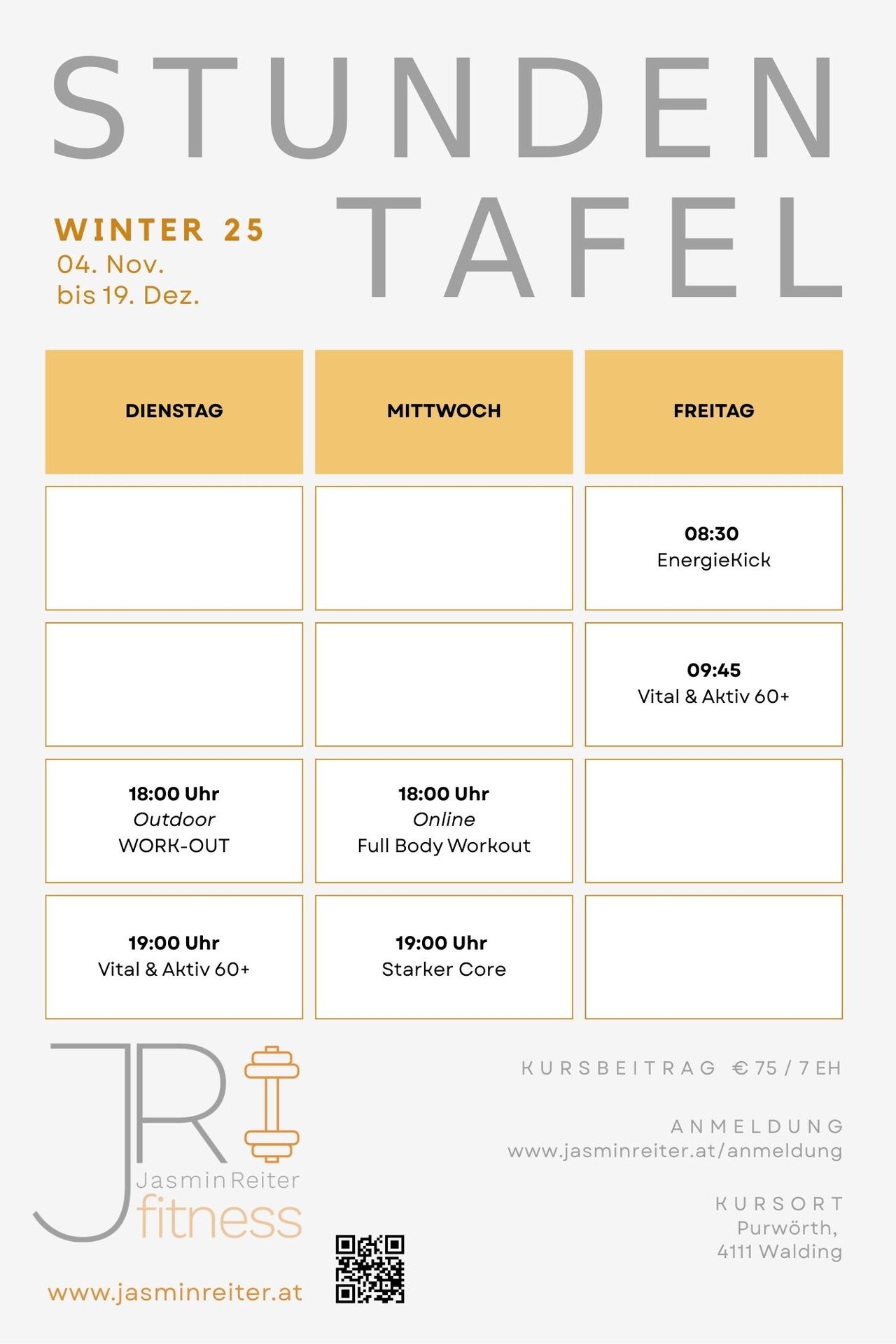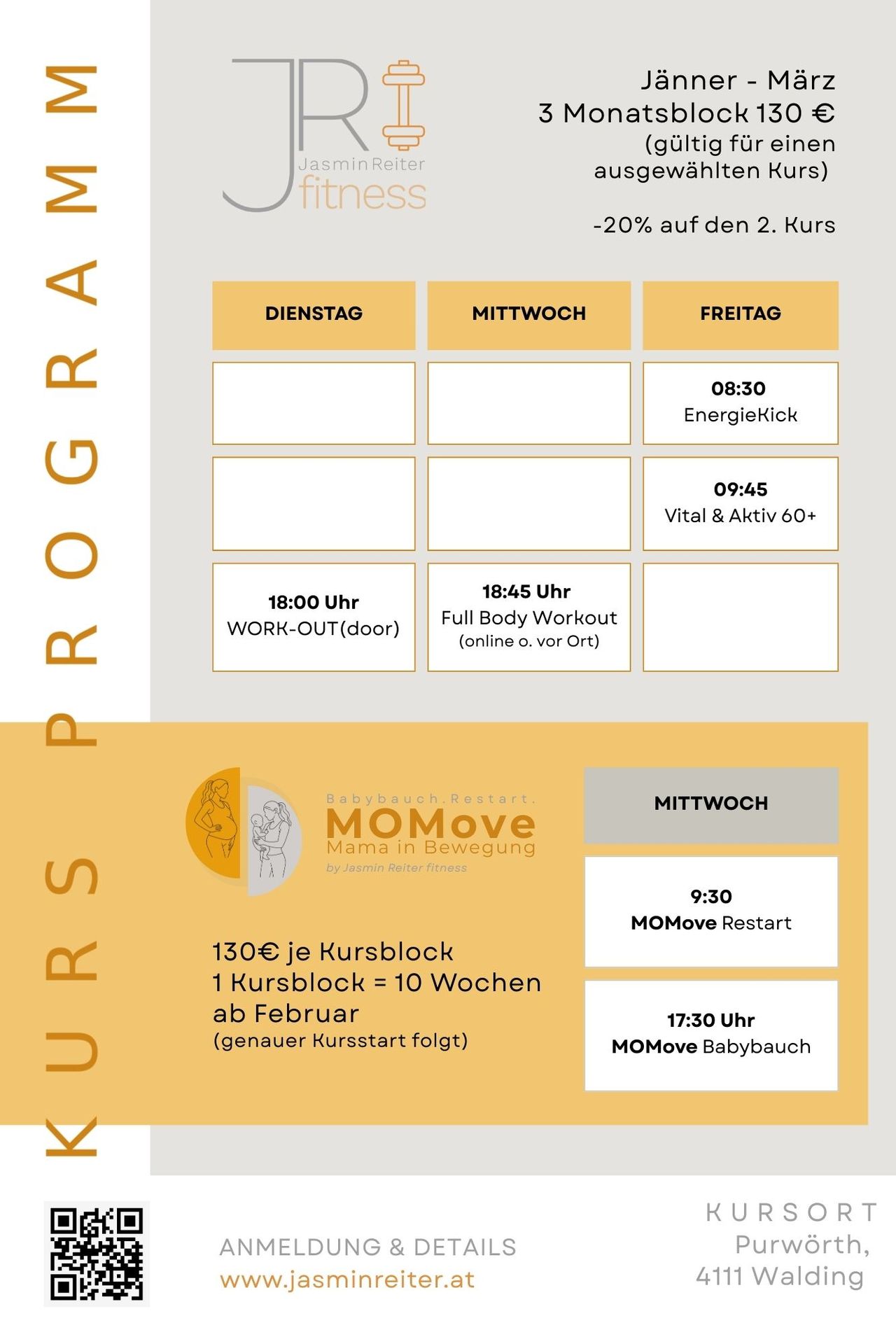 Hier findest du den Ausblick auf den nächsten Kursblock. Anmeldungen sind jederzeit möglich (Plätze bei Indoor Kursen auf max. 9 begrenzt)!